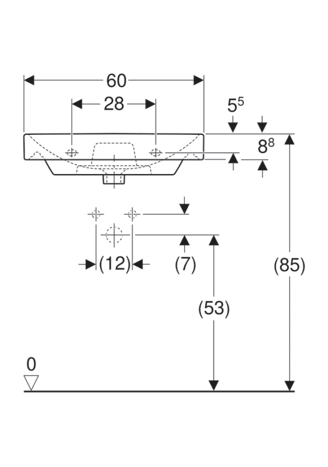 LAVOAR GEBERIT SMYLE SQUARE 60X48 CU ORIFICIU BATERIE SI PREPLIN