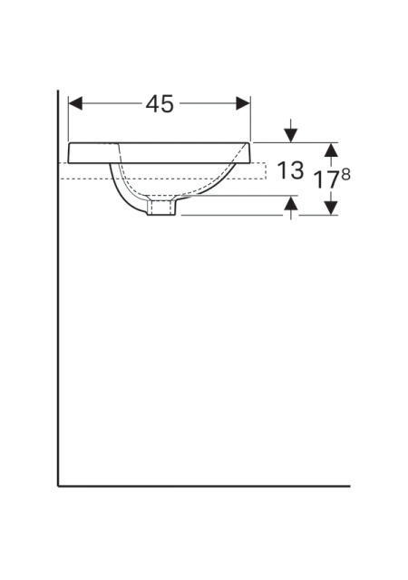 LAVOAR �NCORPORAT GEBERIT VARIFORM, DREPTUNGHIULAR, CU BANC CU ORIFICII DE ROBINET B-55CM,T-45CM,PREAPLIN VIZIBIL, GLAZURAT ALB
