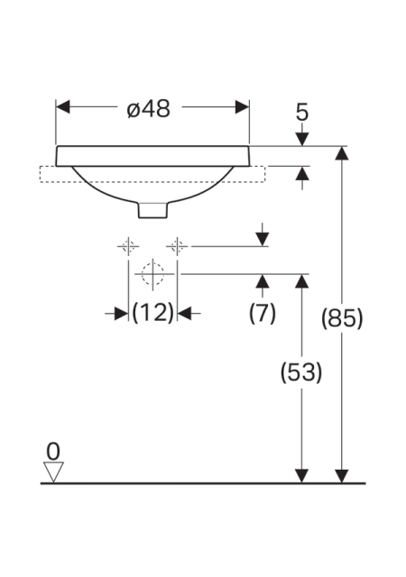 LAVOAR �NCORPORAT GEBERIT VARIFORM, ROTUND, CU BANC CU ORIFICII DE ROBINET D-48CM, PREAPLIN VIZIBIL, GLAZURAT ALB