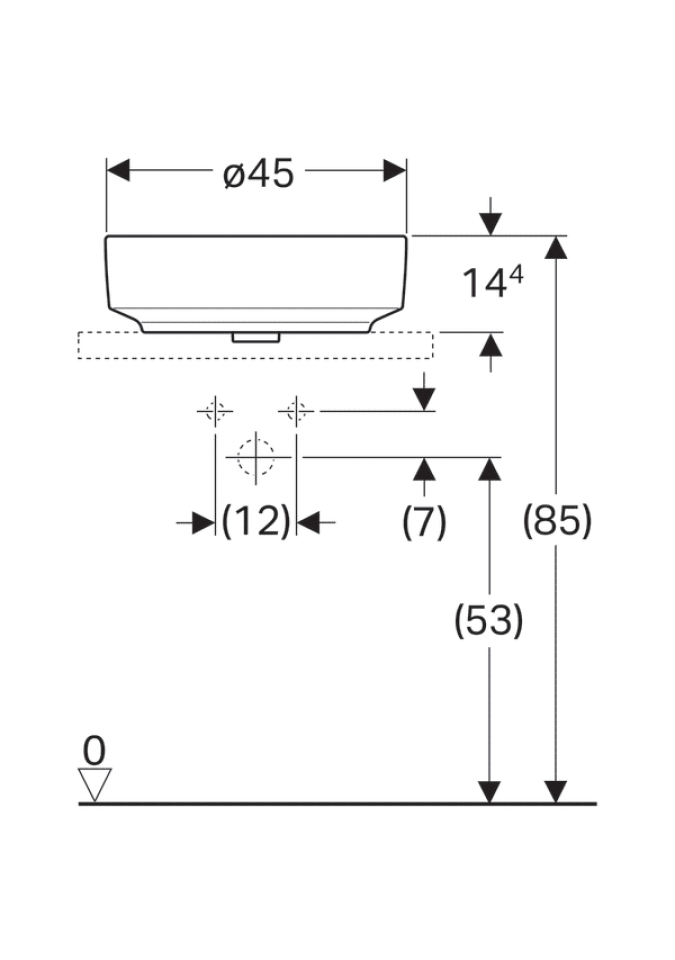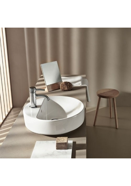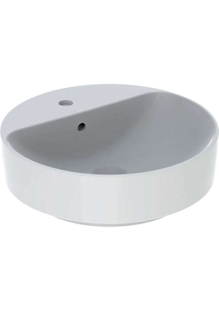 LAVOAR PE BLAT GEBERIT VARIFORM, ROTUND, CU BANC CU ORIFICII DE ROBINET D-45CM, PREAPLIN VIZIBIL, ALB