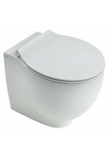 Vas WC stativ rectificat, rimless, cu evacuare universala; evacuarea este de fapt orizontala, dar corpul vasului WC este astfel realizat incat incape si un cot-racord, care transforma evacuarea orizontala in evacuare verticala