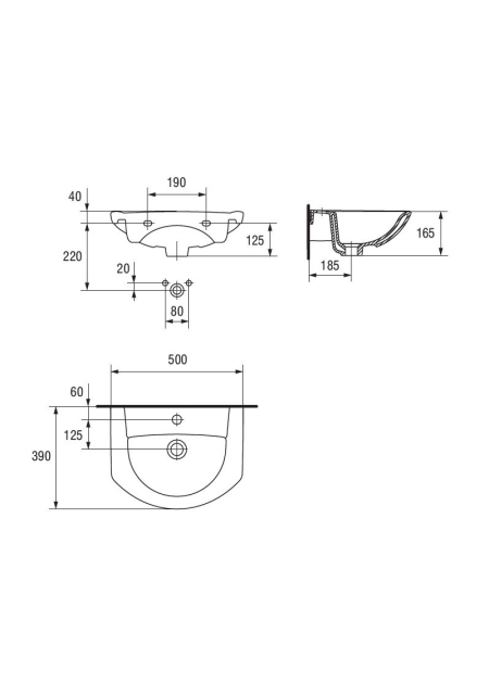 lavoar pentru mobilier cu orificiu central pentru baterie