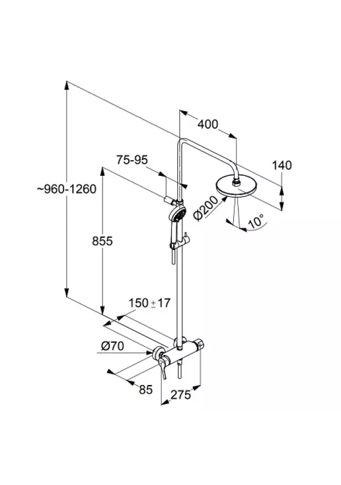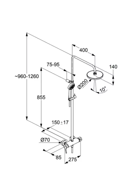 Sistem de dus Logo cu baterie de dus monocomanda Dual ShowerSystem DN 15, cu montaj pe perete, cu bara ajustabila atat orizontal cat si vertical, suportul fiind reglabil orizontal şi vertical. Bateria de dus are cartus ceramic cu limitator de apa calda. Racordul de dus inferior G 1/2 , ventil reglabil la 90° pentru acționarea parei de dus mobile, a parei de dus ficse sau a pipei de umplere cada. Racord de dus superior cu protectie impotriva fluctuatiilor de presiune a apei. Furtunul de dus KLUDI SUPARAFLEX SILVER 6107205-00 G 1/2 x G 1/2 x 1600 mm cu para de dus fixa KLUDI A-QA Ø 200 mm cu para de dus mobile KLUDI LOGO 3S 6830005-00, cu set fixare. Garantie 60 luni. Produs fabricat de Kludi.