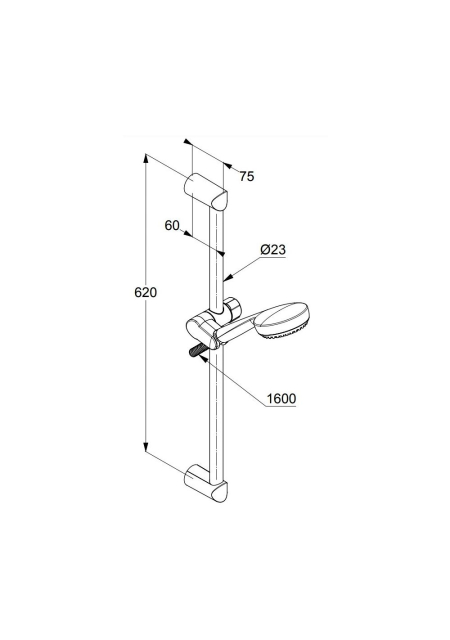 Set de dus format din:- bara de sustinere H600 mm- para de dus cu 3 tipuri de jet si duze anticalcar- suport para de dus- furtun de dus 1600 mm