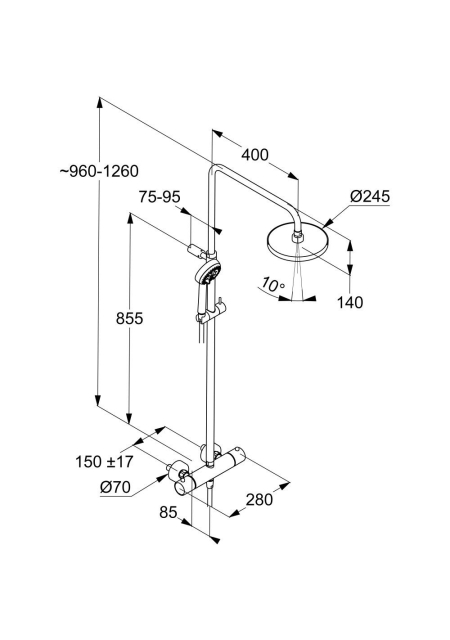 - bara de sustinere cu inaltime ajustabila H960-1260 mm