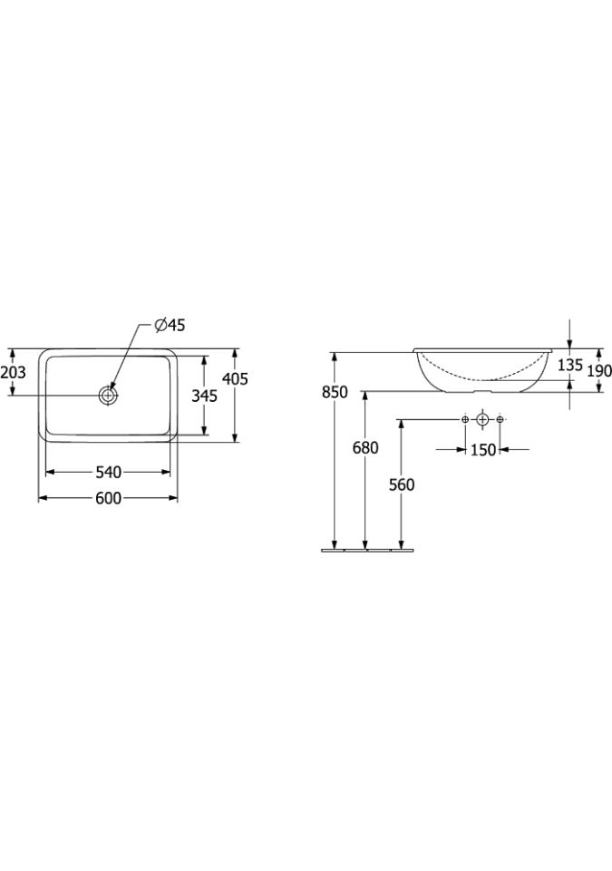 LOOP&FRIENDS, ALB, LAVOAR INCASTRAT, DREPTUNGHIULAR, CU PREAPLIN, 600X405MM, 61450001