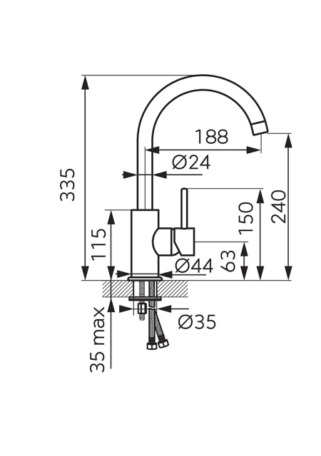 LUGIO, CROM, BATERIE BUCATARIE CU PIPA MOBILA, BLG4