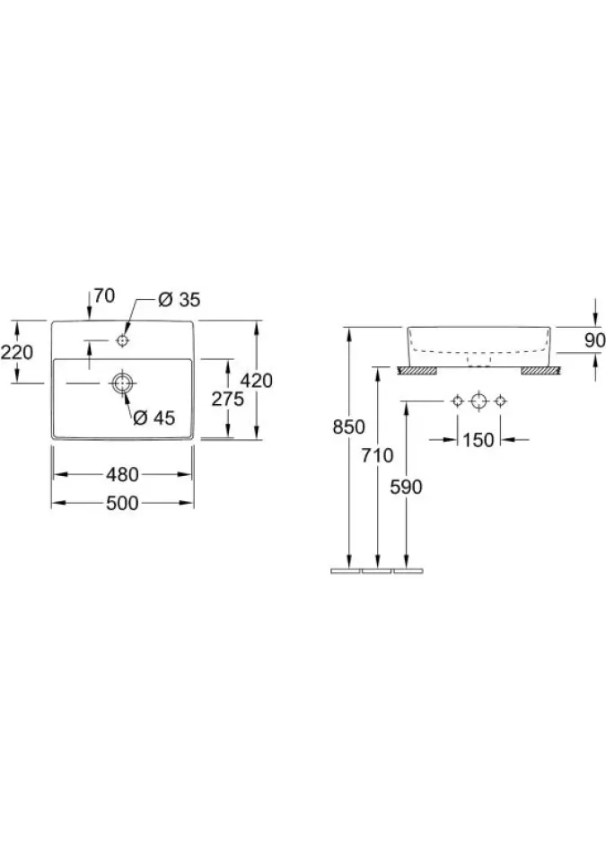 - instalare cu o distanță minimă între spatele lavoarului și perete de 5 cm