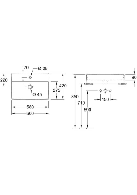 - instalare cu o distanță minimă între spatele lavoarului și perete de 5 cm