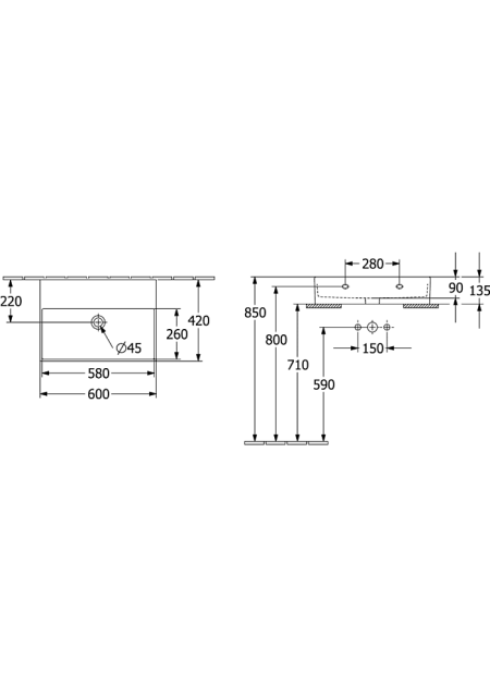 MEMENTO 2.0, EBONY CERAMIC PLUS, LAVOAR DREPTUNGHIULAR 60X42X13.5CM, FARA PREAPLIN SI FARA GAURA PENTRU BATERIE, 4A226FS5