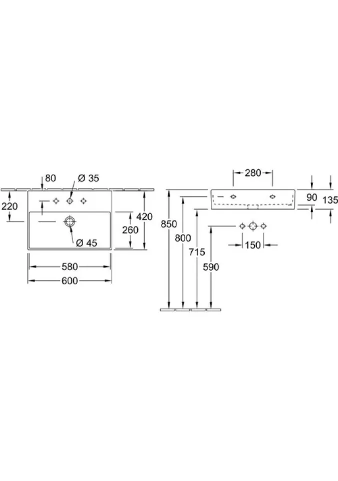 Cu montare pe perete, suprafață inferioară periată, șablon decupat