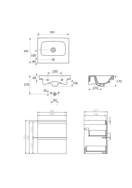 Dimensiuni compacte: latime 494 mm, înălțime 570 mm, adâncime 397 mm.