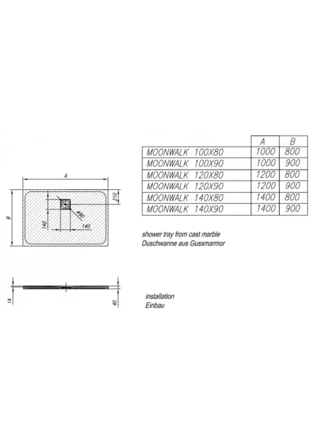 MOONWALK, ALBA, CADITA DE DUS SLIM, 120X90X4CM, MARMURA SINTETICA, 596910