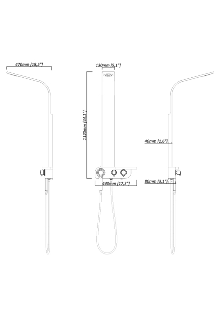 NERO-LUX, PANOU DE DUS, ALUMINIU CU FINISAJ NEGRU, DUS MOBIL, MIXER TERMOSTATIC, 22 MICRODUZE DUS EXOTIC, 112X13X44 CM, S300-3-5052