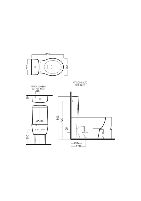 vas WC stativ back-to-wall, cu evacuare universala; evacuarea este de fapt orizontala, dar corpul vasului WC este astfel realizat incat incape si un cot-racord, care transforma evacuarea orizontala in evacuare verticala, vezi schita tehnica
