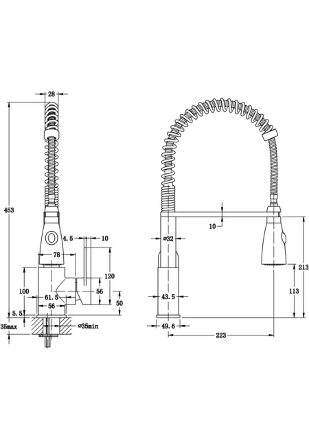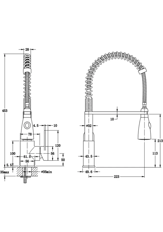 Inaltimea totala a bateriei este de 453 mm, iar adancimea este de 223 mm. Dimensiunile, impreuna cu designul unic, confera un aspect inedit unui element indispensabil din orice bucatarie, de care va veti bucura la fiecare utilizare.