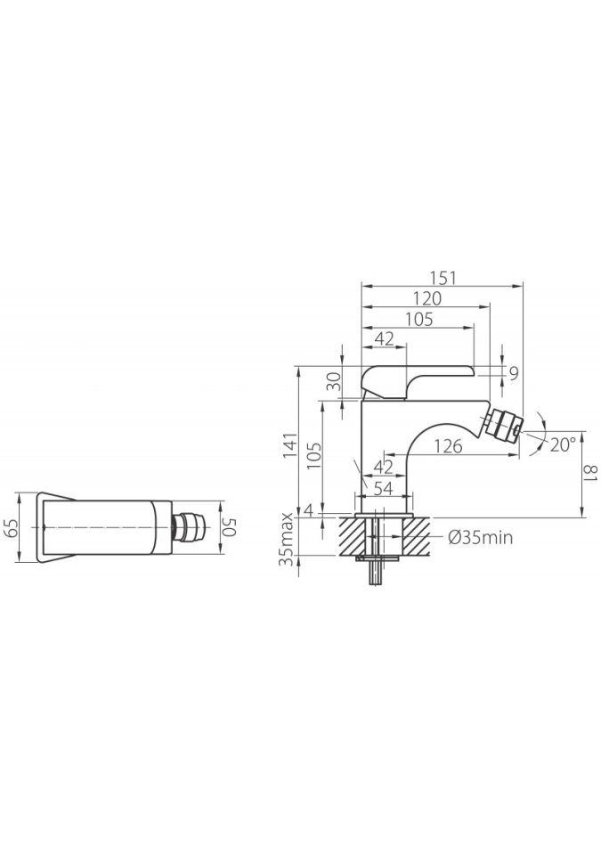cartus ceramic• montare cu un singur orificiu• ventil automat de scurgere G1¼• regulator debit M24x1 cu articulatie sferica• racord flexibil G3/8- M10x1• crom