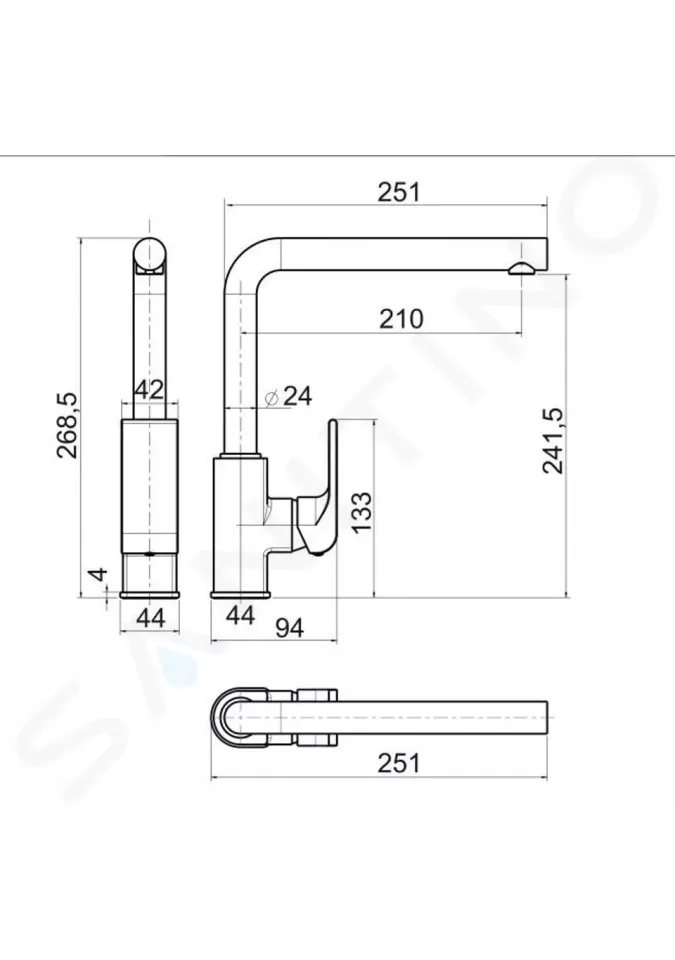 NOBLESS SHARP, CROM, BATERIE BUCATARIE CU PIPA MOBILA, 37713.0