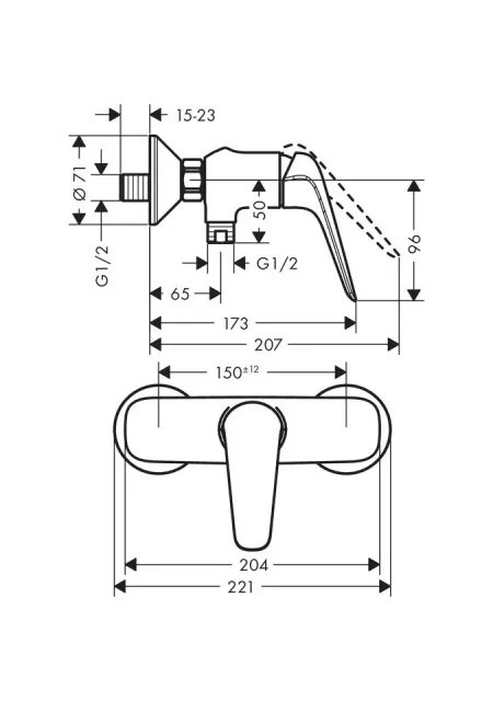 Baterie de duș monocomandă, care permite reglarea facilă a debitului și temperaturii apei cu un singur mâner.