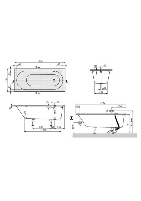 cada pentru montaj prin inzidire se livreaza cu set picioare ajustabile de la 13 la 18 cm.
