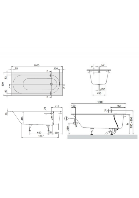 cada pentru montaj prin inzidire se livreaza cu set picioare ajustabile de la 14.5 la 18 cm