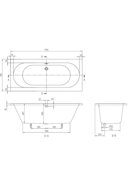 - diametrul scurgerii: 52 mm
