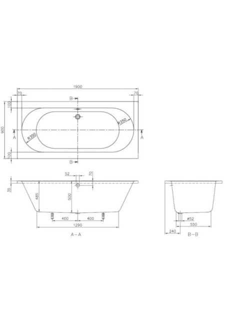 - dimensiunile fundului căzii de baie: 129 x 55 cm