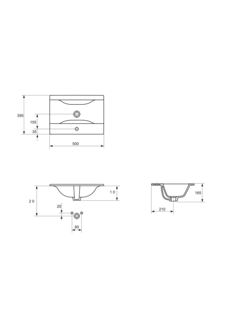 lavoar dreptunghiular cu orificiu pentru baterie