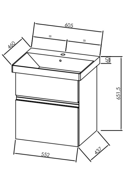 OXANA OUO 60 HB, STEJAR INCHIS, SET MOBILIER + LAVOAR, 60CM, 507180