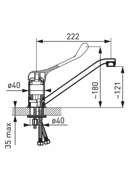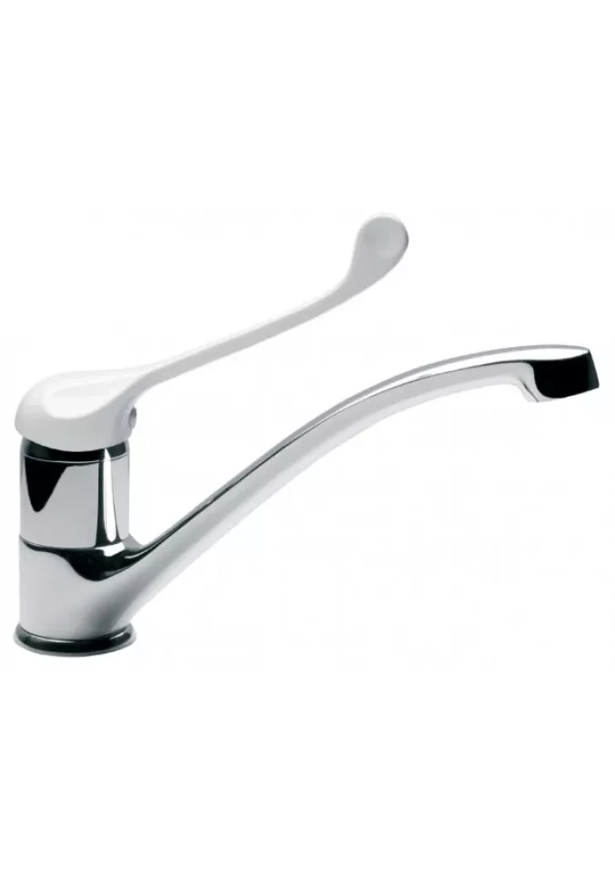 Baterie stativă bucătărie, mâner special cu strat antimicrobian Alesta, cartuș ceramic, montare cu un singur orificiu, aerator Care Guard Agion M24x1, pipă mobilă, tip racordare uri flexibile de conectare D3/8” - M10x1, crom-alb.