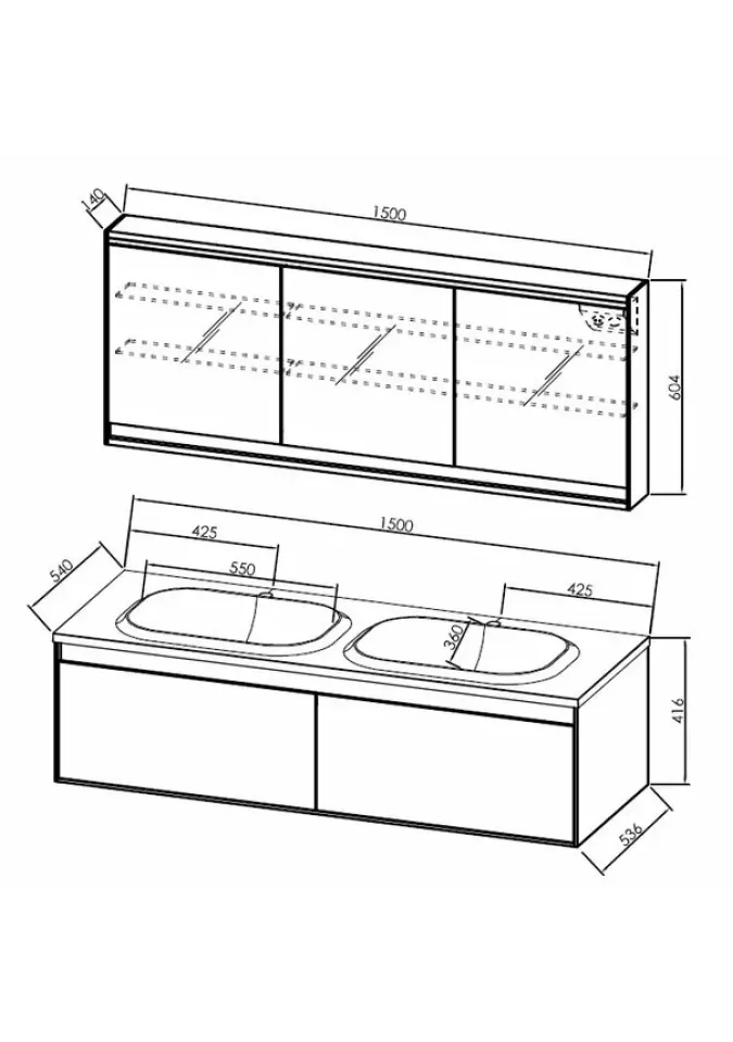 Specificatii tehnice Dulap suspendat cu oglinda KolpaSan Pandora 150 cm: