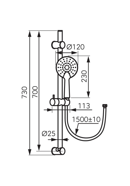 bara metalica dus fixa 700 mm