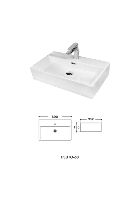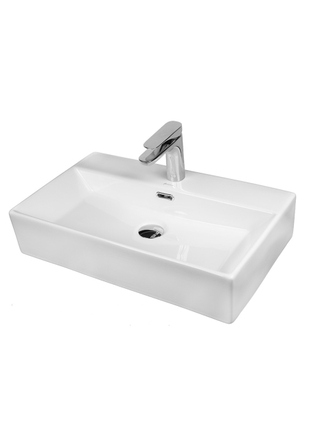 lavoar pe blat dreptunghiular cu orificiu pentru baterie si cu preaplin