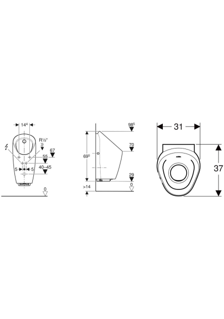 - pentru elementele de montare a urinarelor Geberit cu comandă integrată sau pentru comandă integrată