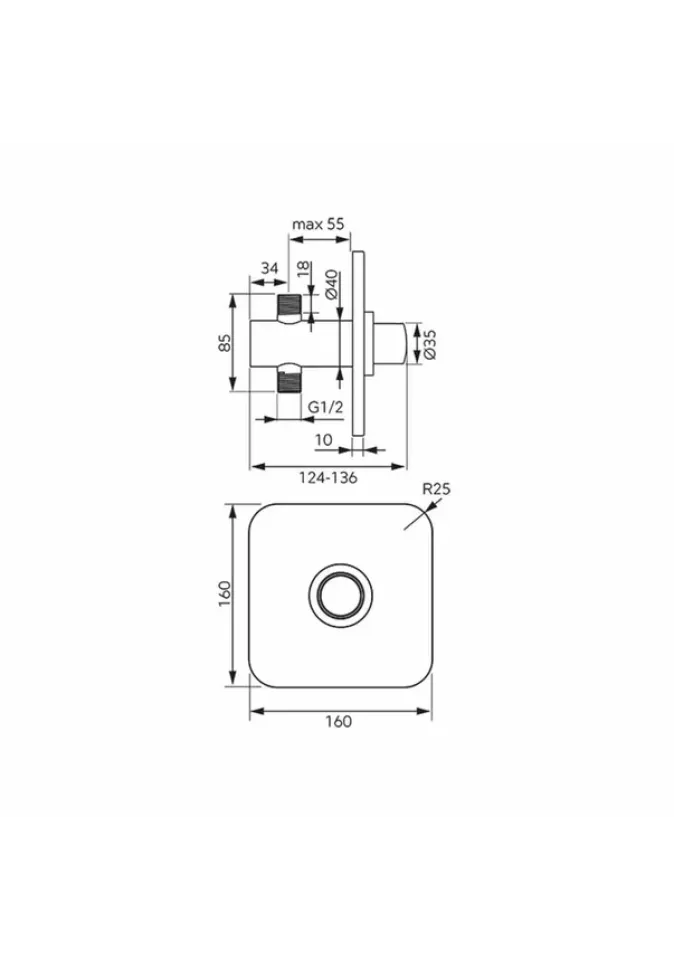 PRESSTIGE PRO SQ, CROM, ROBINET INGROPAT CU TEMPORIZARE PENTRU DUS, Z503SQ