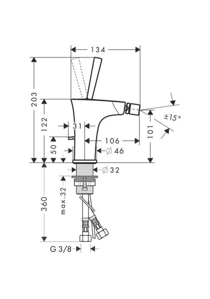 Baterie bideu seria PuraVida, finisaj crom, proiectie 106 mm, cartus ceramic de tip joystick, debit la 3 bari: 7.2 l / min, aerator pivotant. Adecvat pentru încălzitoare de apă cu flux continuu, set de deseuri pop-up din metal G 1¼ iar dimensiunea conexiunii: DN15.