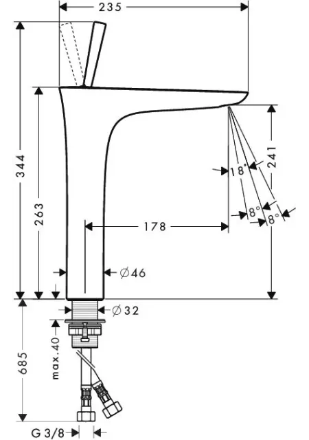 • Montaj stativ, pe blatul mobilierului pentru baie;