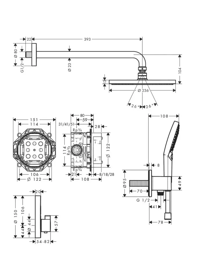 potrivit pentru toate seturile exterioare de duș, cadă și termostat pentru instalare încastrată