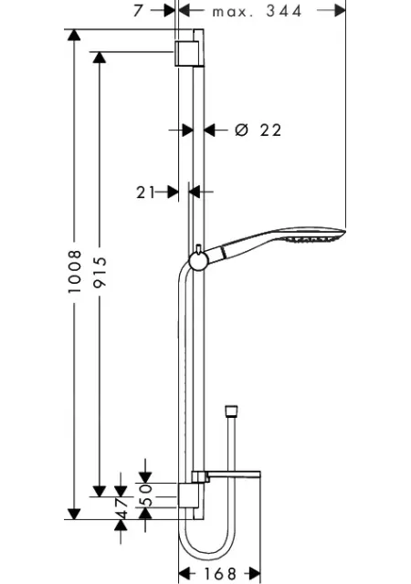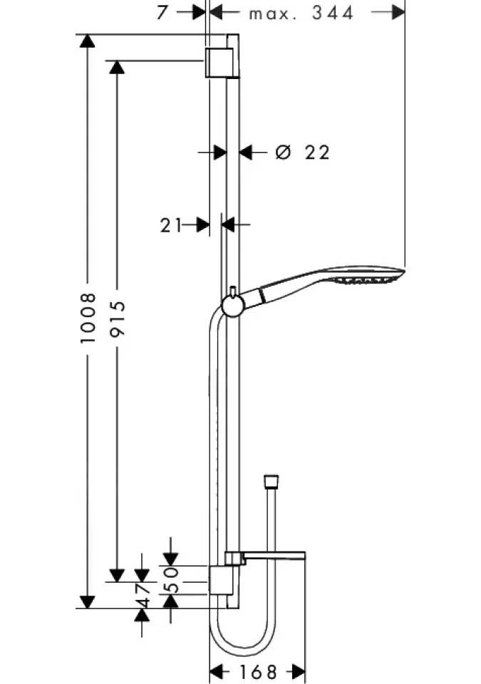 RAINDANCE SELECT E 150, CROM, SET DUS CU BARA DUS L=90CM, CAP DUS 3S, FURTUN L=160CM, PORTSAPUN, 27857000