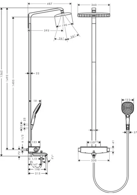 RAINDANCE SELECT E, ALB/CROM, SET DE DUS TERMOSTATAT 300 CU 2 JETURI ECOSMART 9L/MIN, 27283400