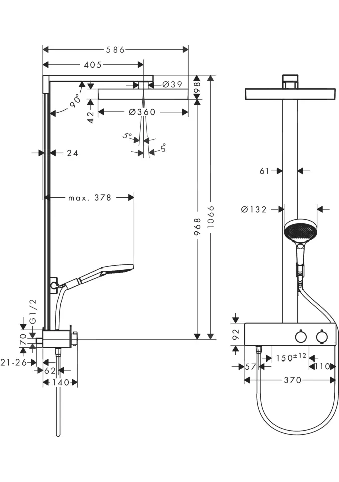 suport de duș de mână cu înălțime reglabilă, cu glisor Push cu buton de blocare