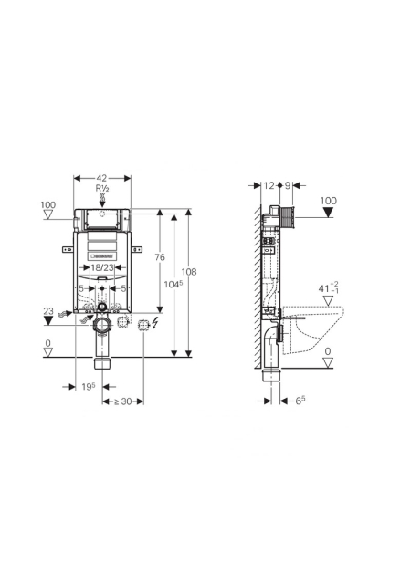 racord de alimentare apa R 1/2", compatibil MF, cu robinet de inchidere cu actionare manuala caseta de protectie pentru gura de vizitare 4 coturi de fixare set de racordare pentru WC, ø 90 mm cot de conectare 90° din PE-HD, ø 90 mm mufa de adaptare din PE-HD, ø 90 / 110 mm 2 dopuri de protectie 2 tije filetate M12 material de fixare