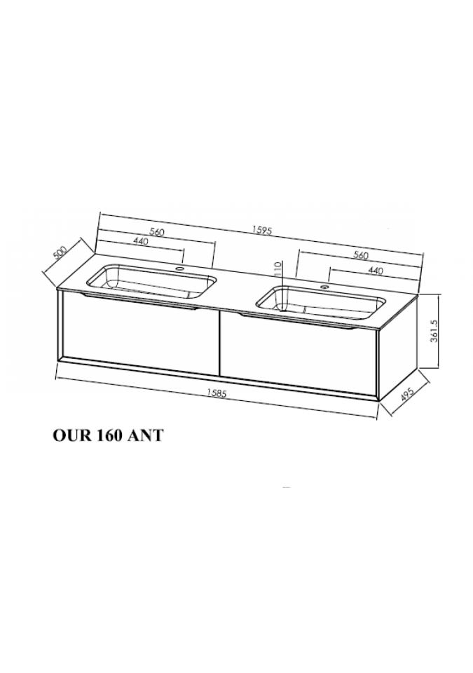 RAMONA, OUR 160 ANTRACIT, MOBILIER SUSPENDAT + LAVOAR DUBLU DIN KERROCK, CU 2 GAURI PENTRU BATERIE, 538820