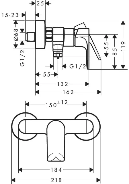 - distanta conexiuni perete : 150 +/- 12 mm