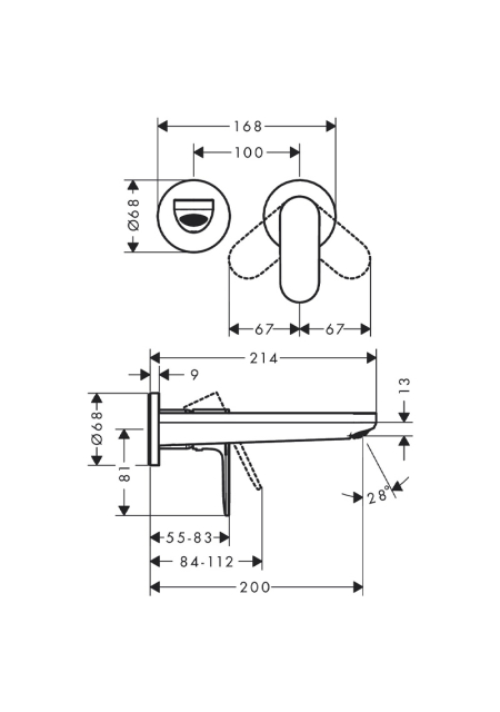 - dimensiune racord: DN15in functie de montarea corpului incastrat, manerul bateriei poate fi pozitionat in stanga sau in dreapta.