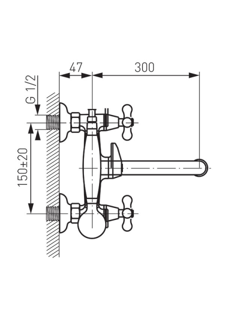 RETRO, CROM, BATERIE CADA-DUS CU MONTAJ PE PERETE, PIPA L = 30CM, XR11A