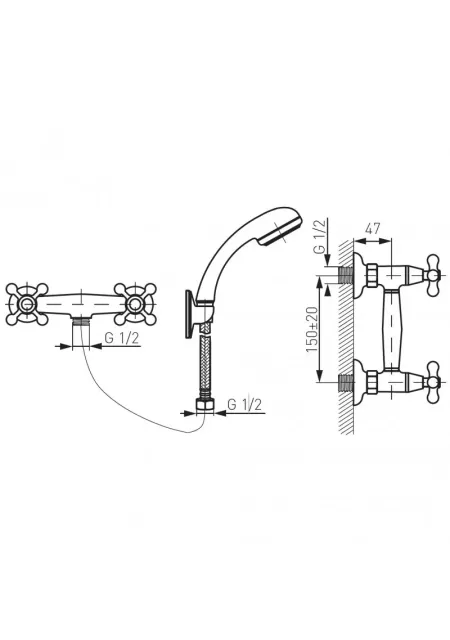 RETRO, CROM, BATERIE DUS CU MONTAJ PE PERETE, XR77