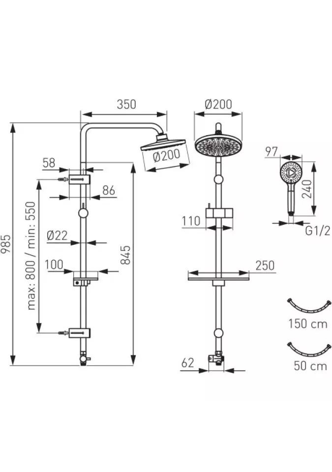 - furtun de racordare din PVC de 50 cm cu piuliță G1/2 - racordare universală la orice mixer de cadă și duș