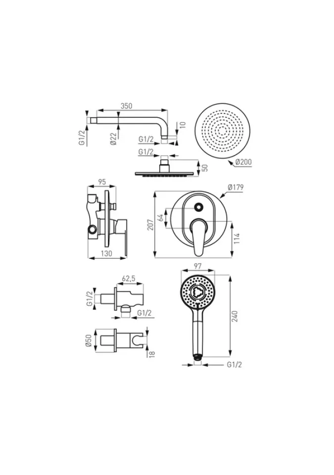 Para dus-rotunda ø 97 mm cu 3 functii: ploaie, masaj si mixt