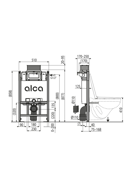 pentru instalarea vaselor de wc suspendate cu prinderea de 180 mm sau 230 mm